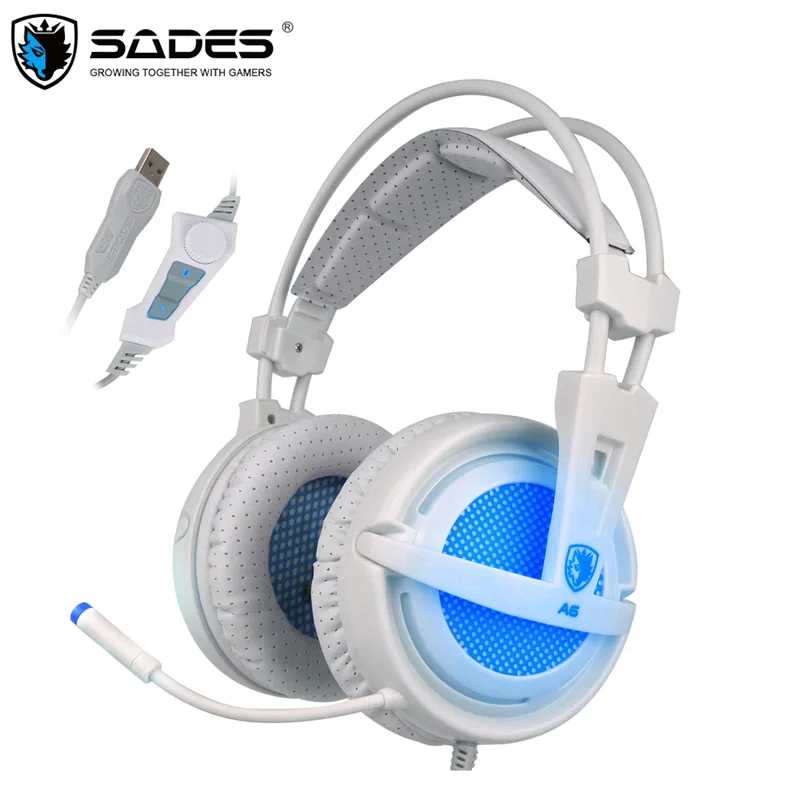 SADES A6 USB 7.1 Stereo wired gaming headphones game headset over ear with mic Voice control for la
